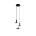 Lustre 3 lampes Zadar en métal cognac et doré avec verre ambré
