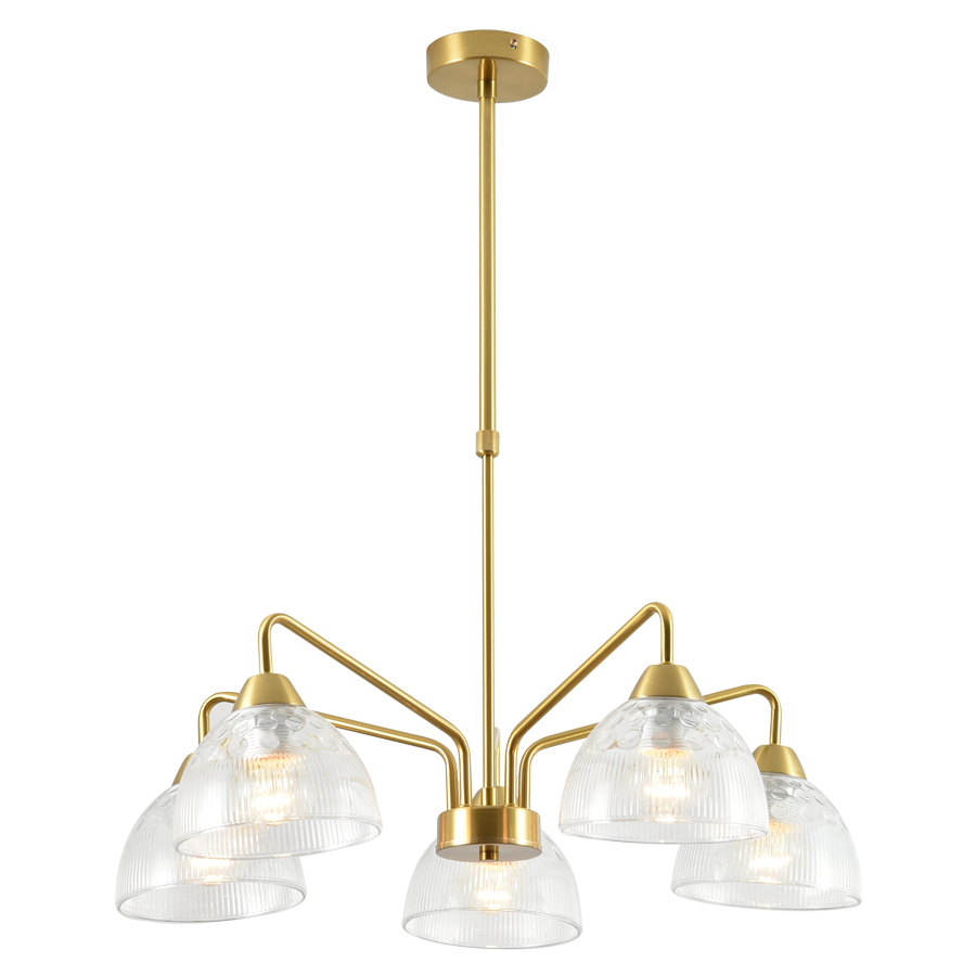 Lustre 5 lampes Léonore en métal doré et verre transparent